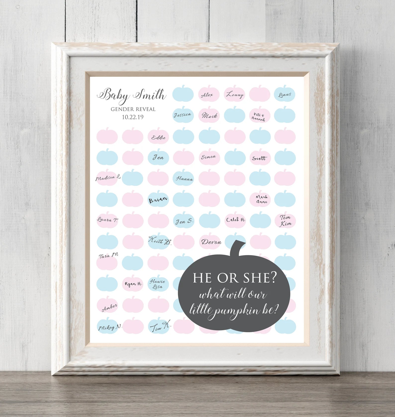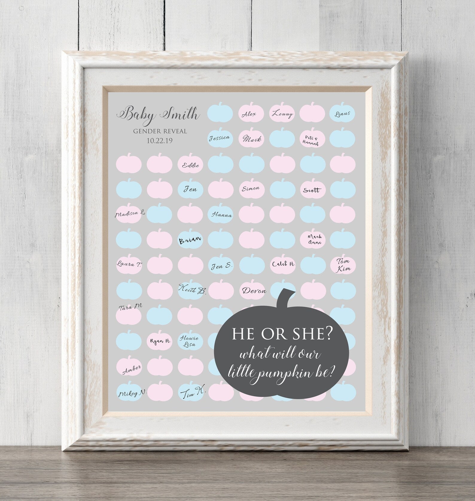 Fall Gender Reveal Guess Sign. Pumpkin Guest Book or Guess Gender. 8x10. Can personalize text and colors. Print for your guests to sign or guess the gender. Prints BUY 2 GET 1 FREE!