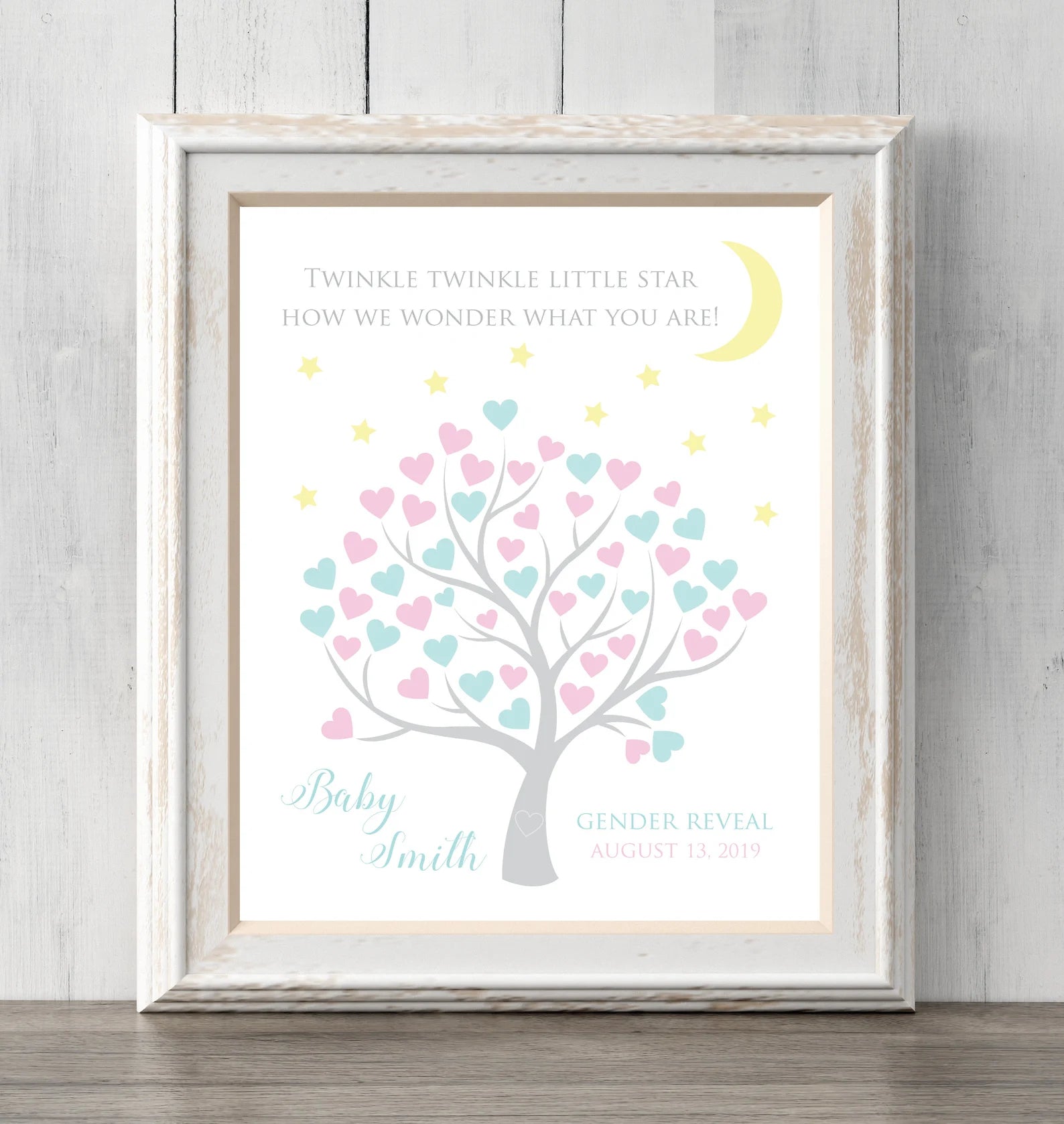 Gender reveal guest book print. 8x10. Twinkle Twinkle. Can personalize text and colors. Print for your guests to sign or guess the gender. Prints BUY 2 GET 1 FREE!