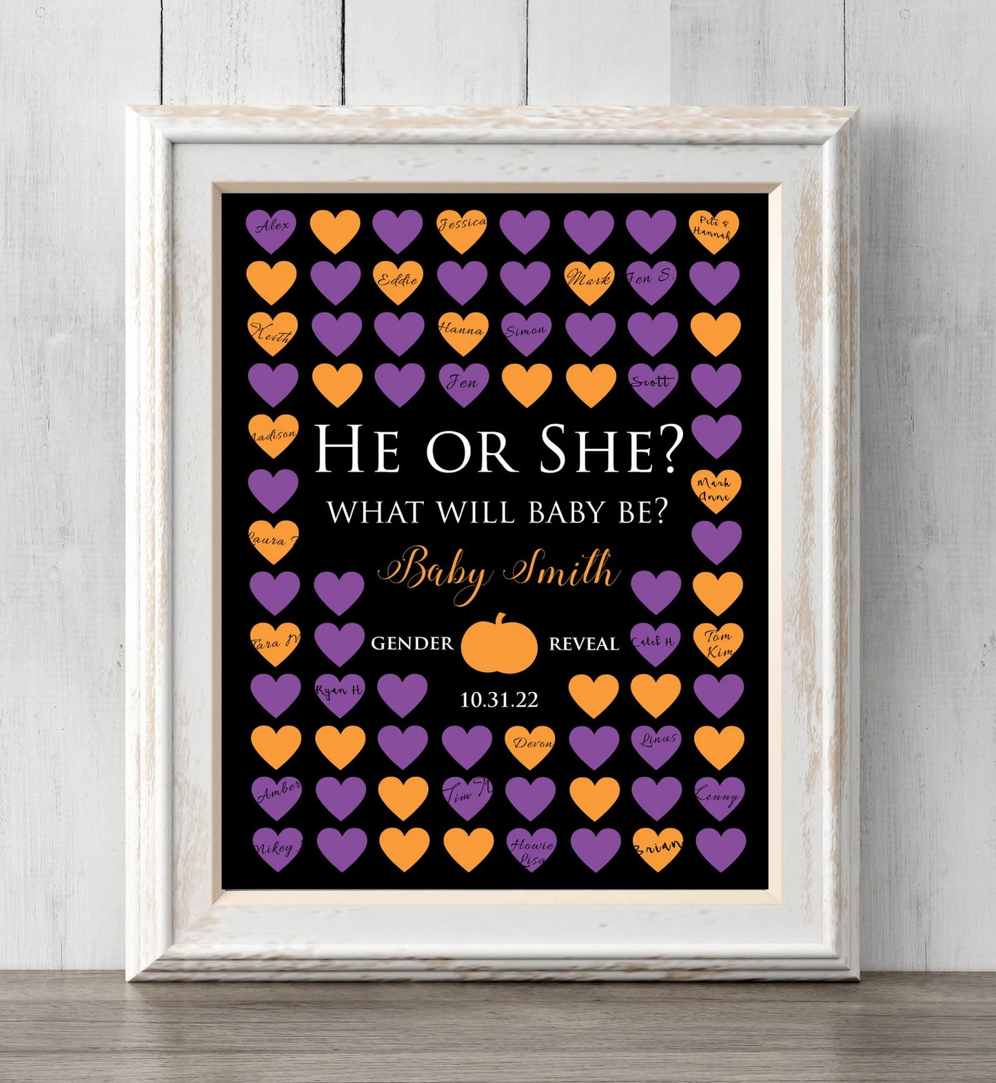 Halloween Gender Reveal Print. Fall Gender Reveal Guest Book Print or Guess Gender. Personalize text and colors. Prints BUY 2 GET 1 FREE!