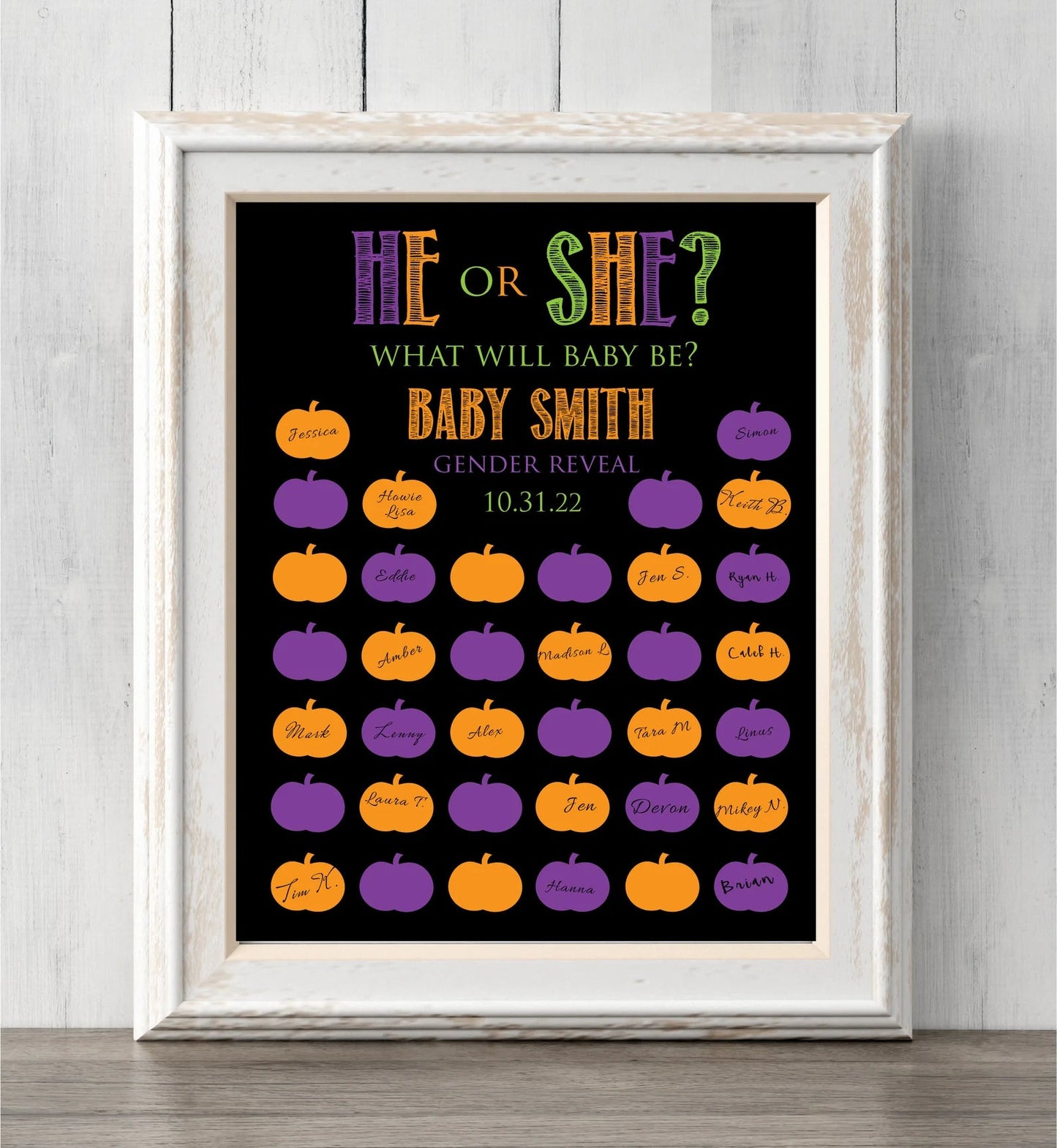 Halloween Gender Reveal Idea. Fall Gender Reveal Guest Book Print or Guess Gender. Personalize text and colors. Prints BUY 2 GET 1 FREE!