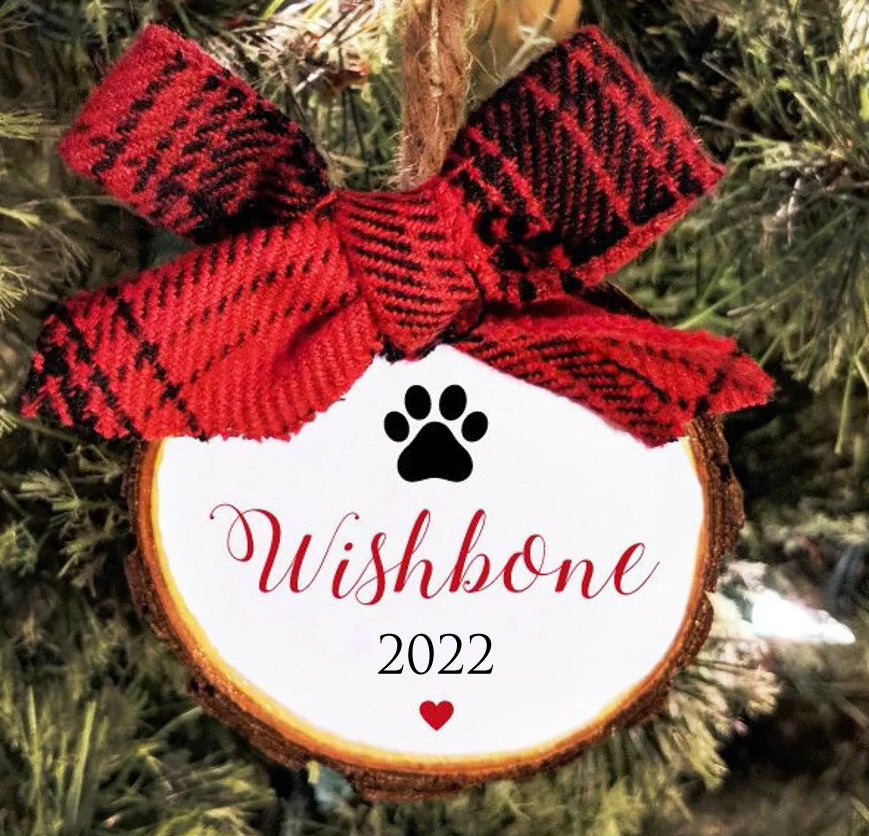 Dog Christmas Ornament with Name and Date. Personalized Pet Christmas Ornament.