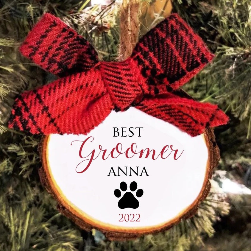 Dog Groomer Christmas Ornament. Personalized with Name and Date.