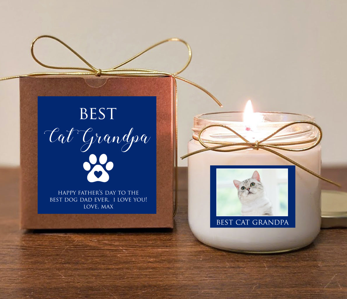 Father's Day Cat Grandpa Gift Candle. Cat Dad, Dog Grandpa. Can add photo. You pick text and colors.