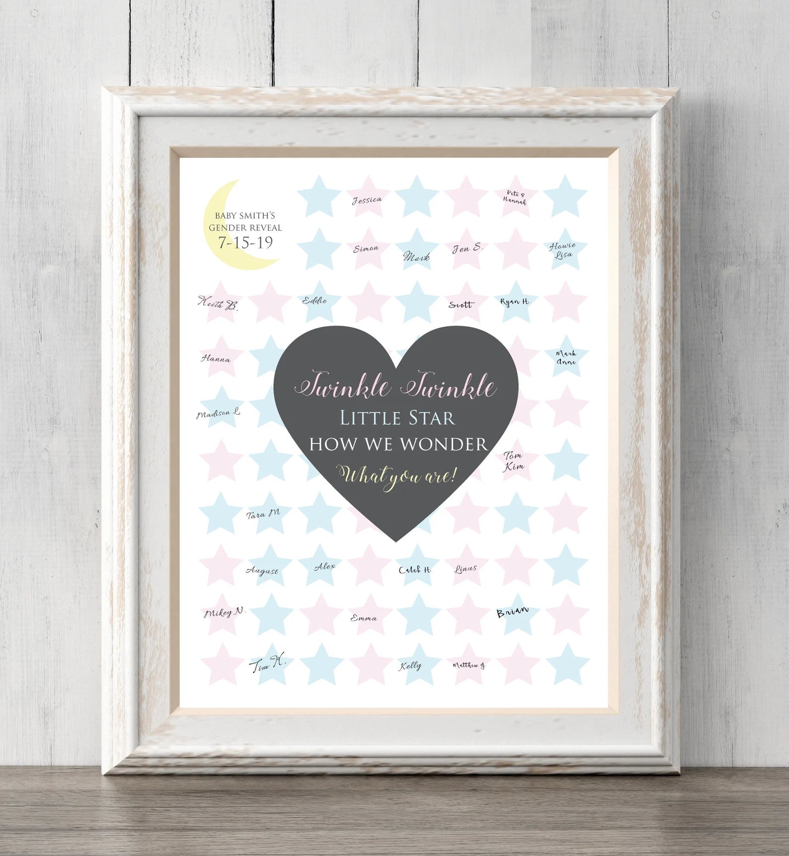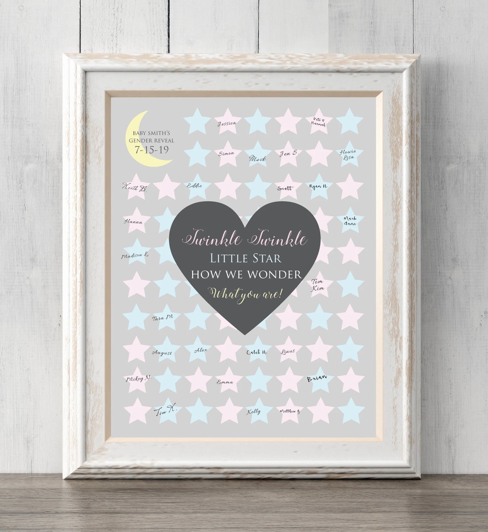 Gender reveal idea guest book print. 8x10. Twinkle Twinkle. Personalize text and colors. Guests sign or guess gender. BUY 2 GET 1 FREE!