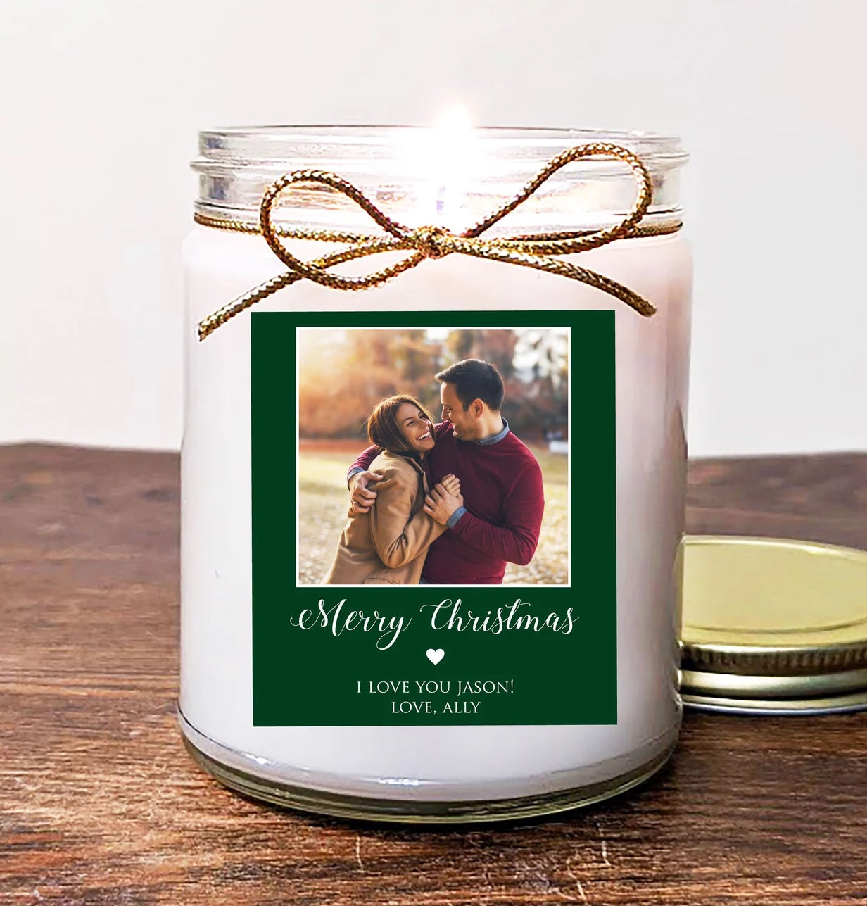 Gift for Girlfriend. Personalized Christmas Photo Candle. Customize. 8oz Soy. Scent - Sleigh Ride