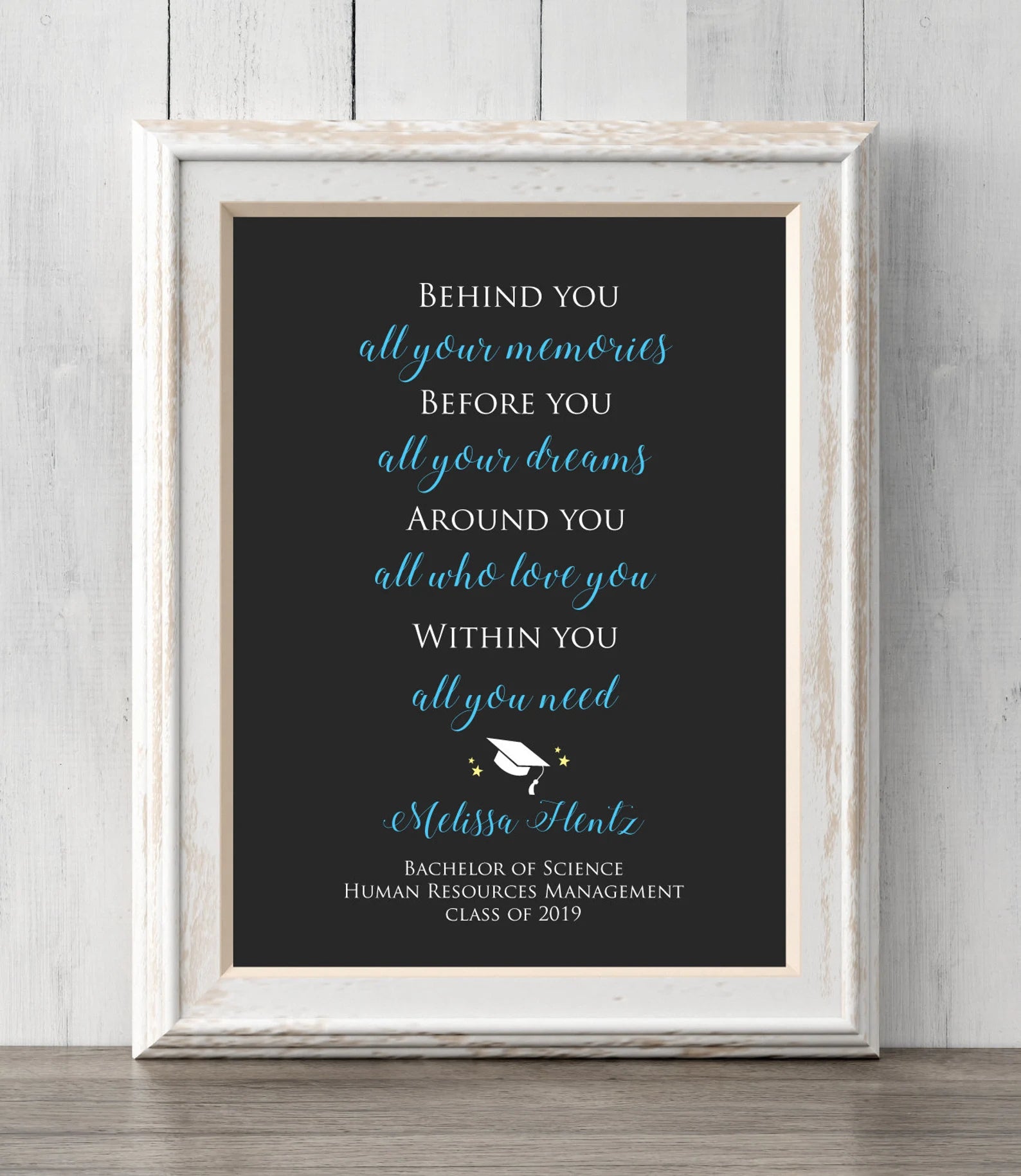 Graduation Gift Print. Personalized. Behind you all your memories. Before you all your dreams. Custom Colors and Text. BUY 2 GET 1 FREE!