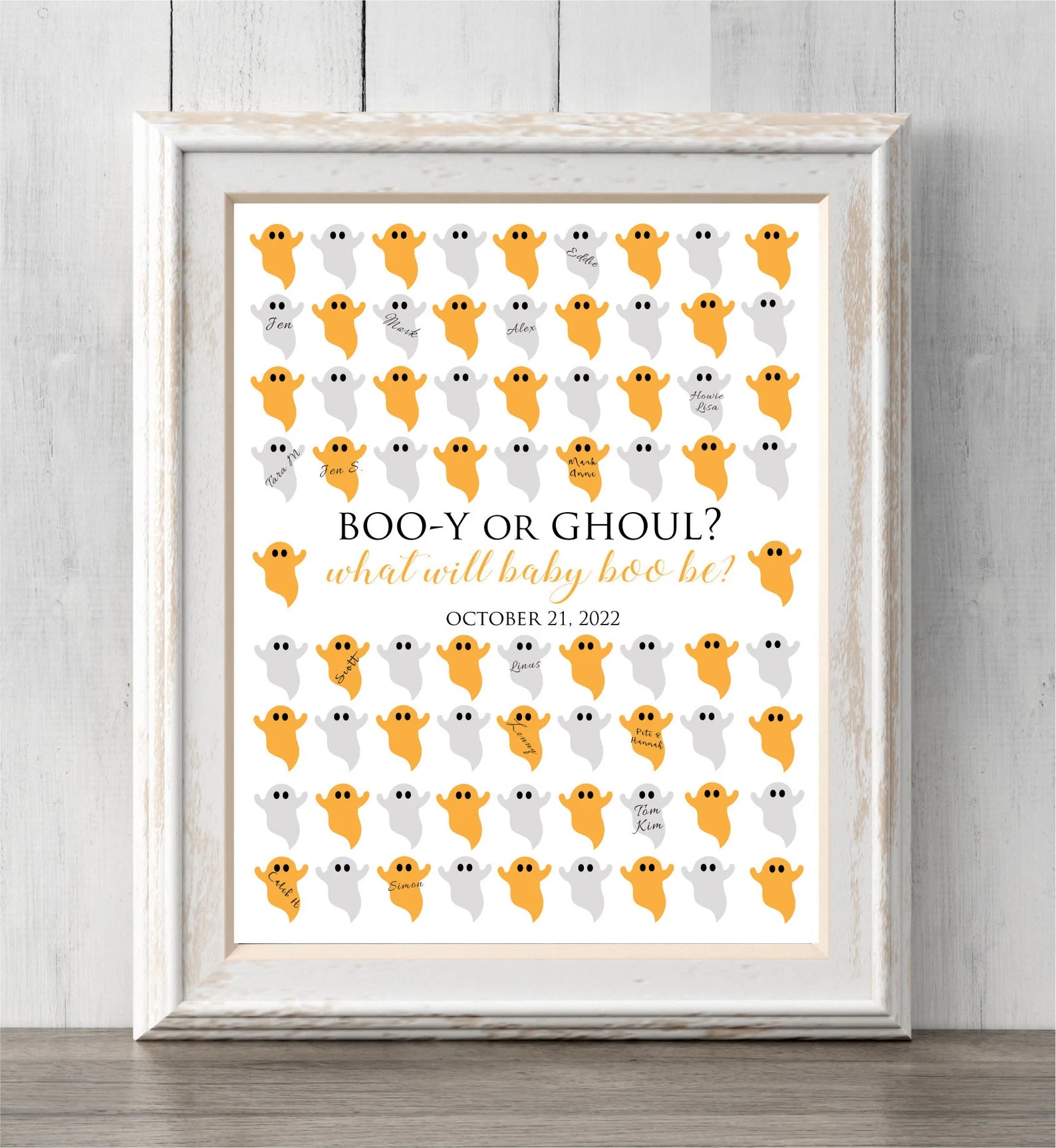Halloween Gender Reveal Idea. Boo-y or Ghoul? Ghost Guest Book Print or Guess Gender. What Will Baby Boo Be?