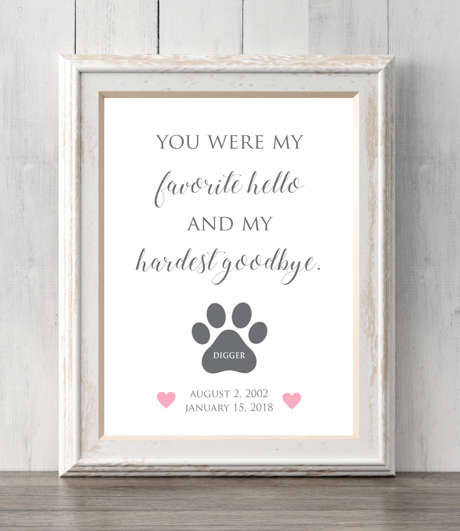 Loss of Dog Gift. 8x10 Personalized Pet Memorial Print. You were my favorite hello and my hardest goodbye. All Prints BUY 2 GET 1 FREE!