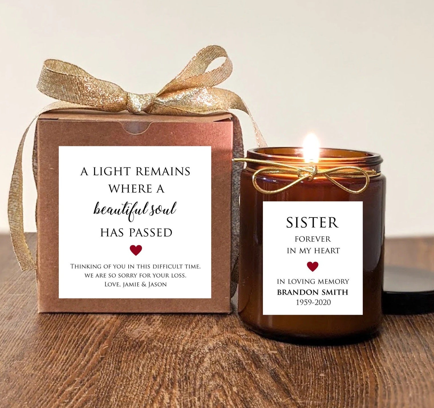 Loss of Sister Memorial Gift Candle. 8oz Vanilla. A light remains where a beautiful soul has passed.