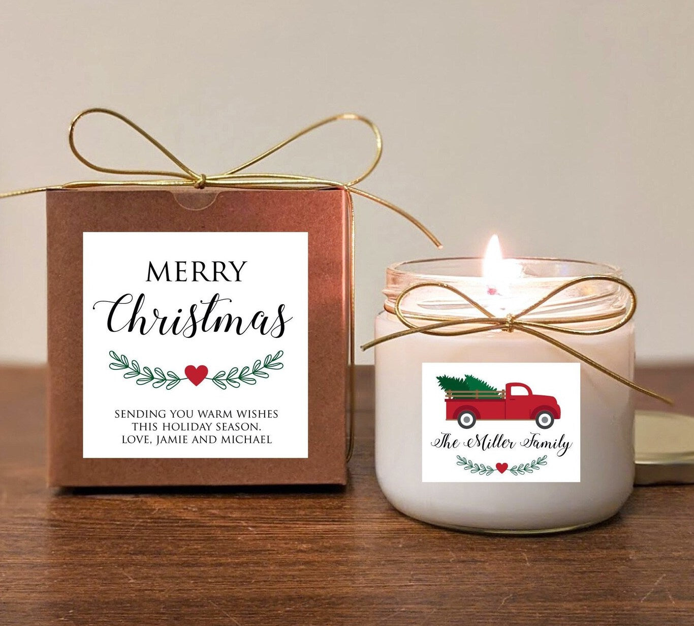 Personalized Christmas Gift. Red Truck. Christmas Gift for Family. Personalize text and colors. 12oz Soy Vanilla.