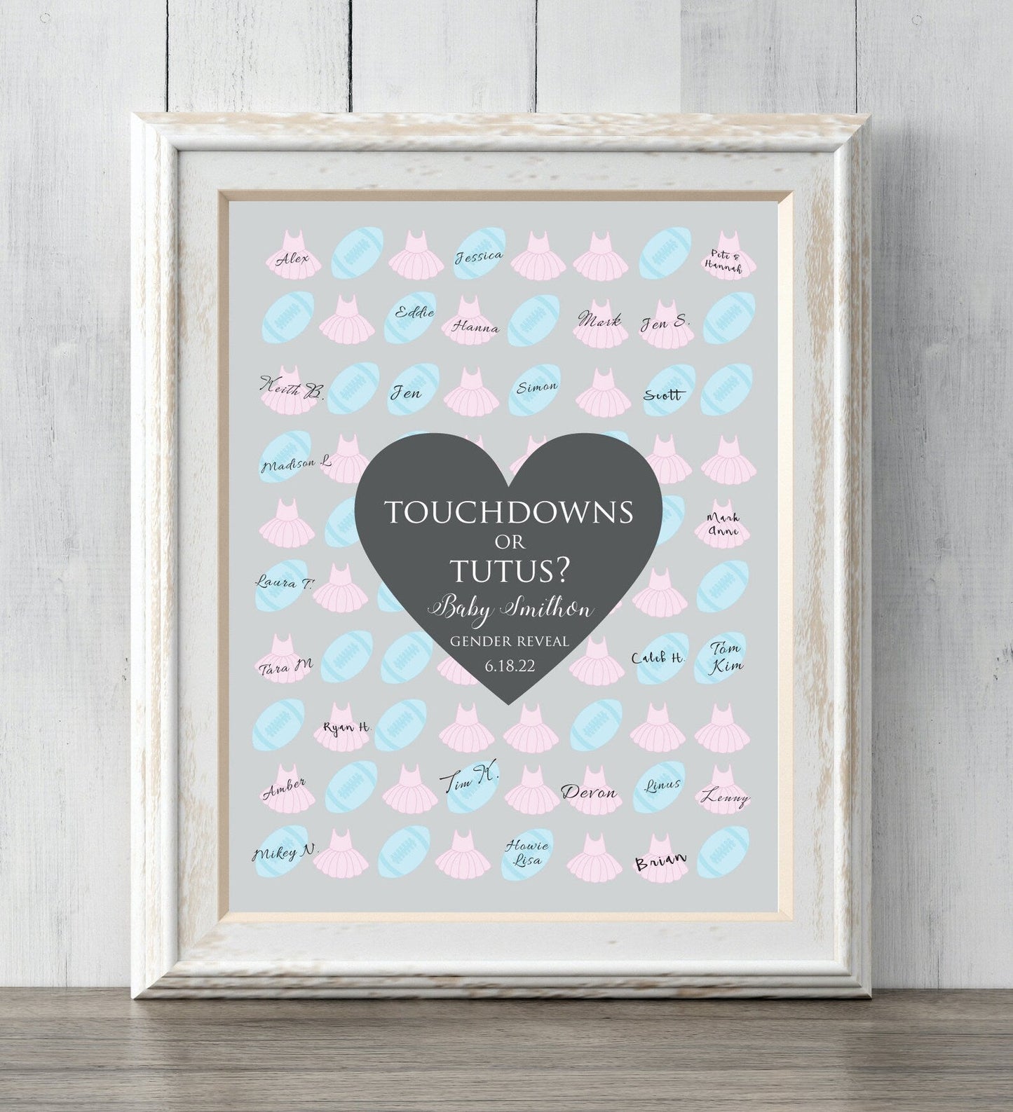 Personalized Gender Reveal Party Idea. Touchdowns or Tutus? Personalized Print for your guests to sign or guess the gender. Prints BUY 2 GET 1 FREE!