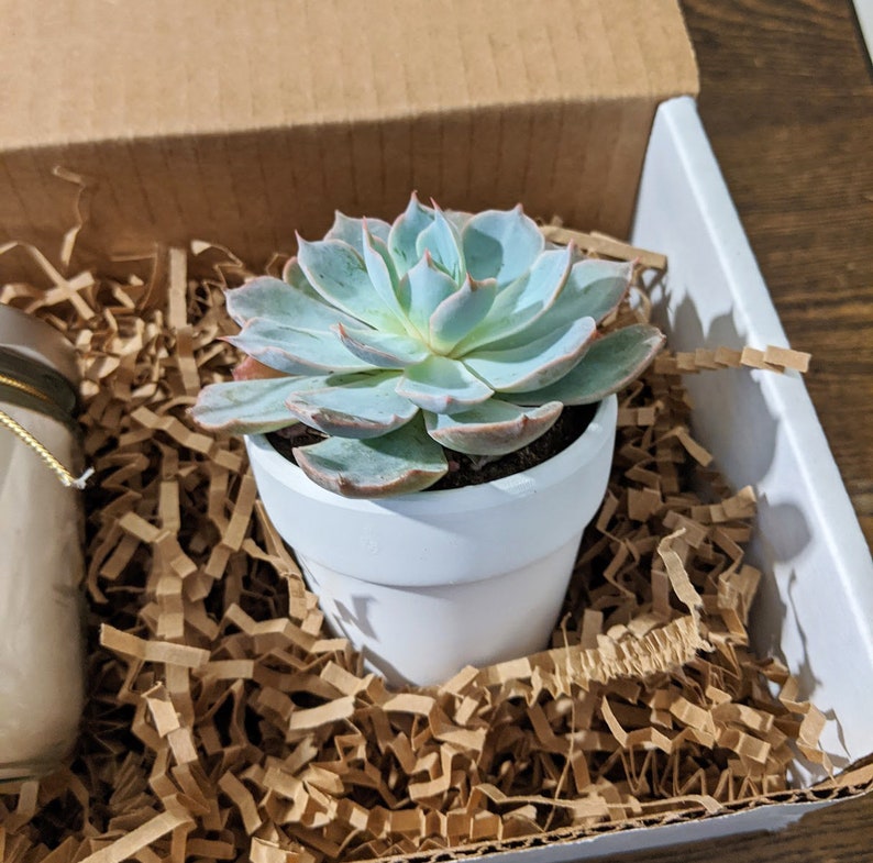 Memorial Gift Box with Candle and Succulent. The candle is 8oz. - Vanilla.