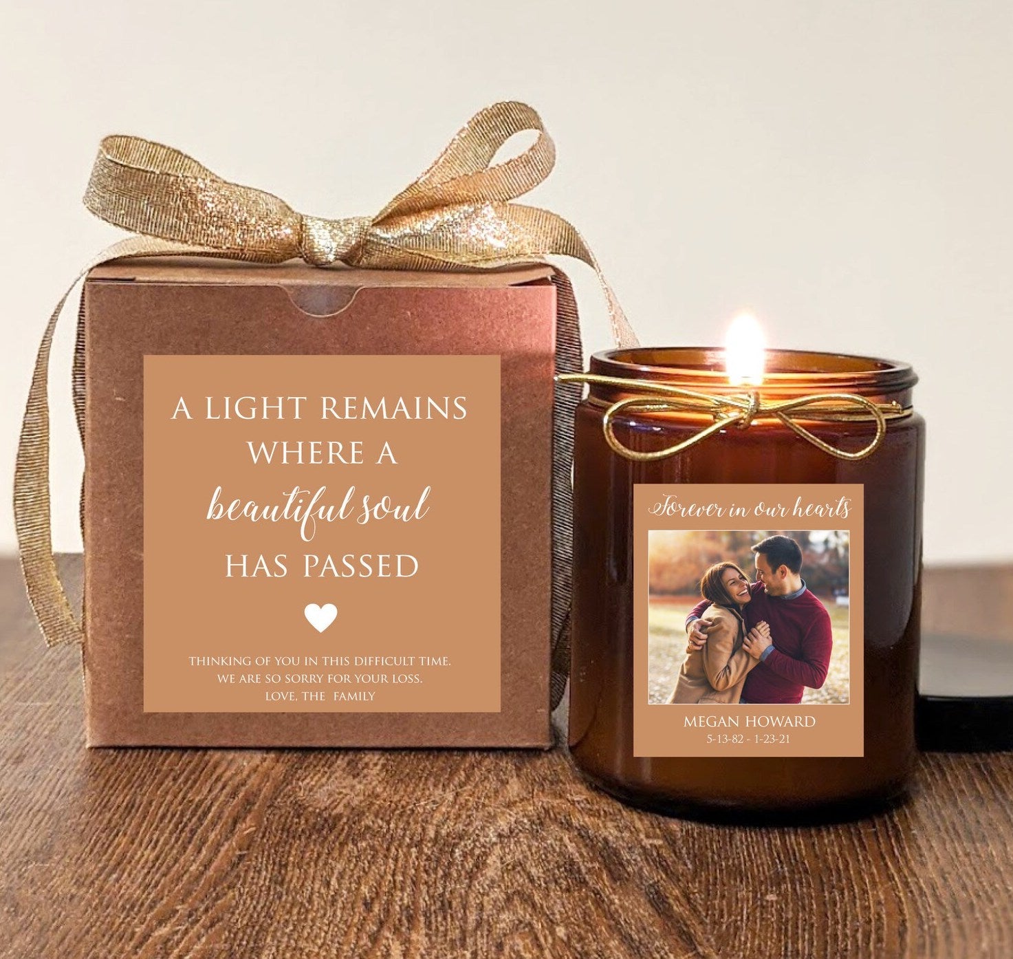 Personalized Memorial Gift Photo Candle 8oz Vanilla. A light remains where a beautiful soul has passed.