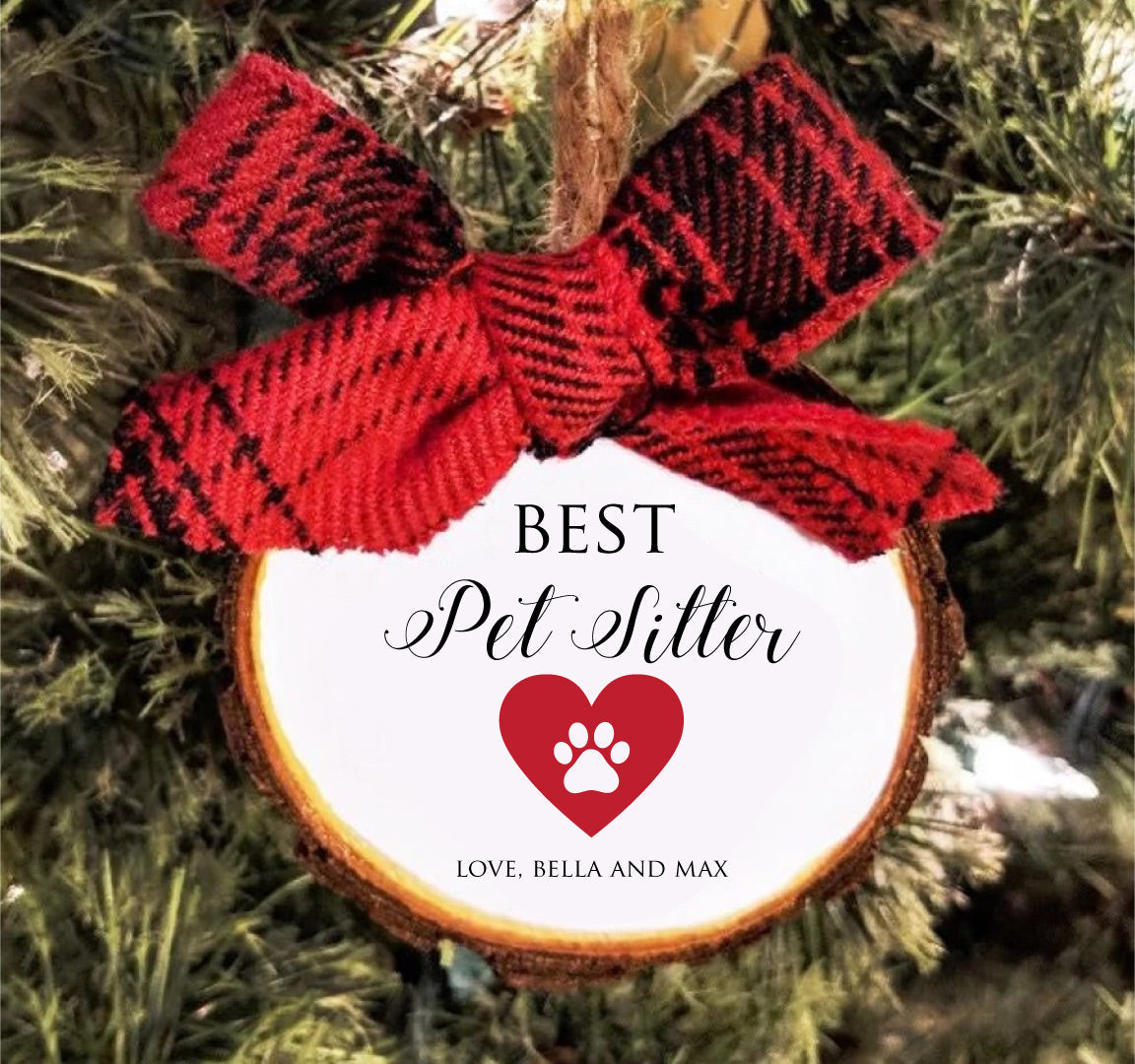 Ornaments are hand made. They are printed on 80# paper. They are then sealed over a wood slice. Size will vary and be about 2.4-2.8 inches. They are not hand painted. The ornament will come with the red and black buffalo plaid bow that is pictured.