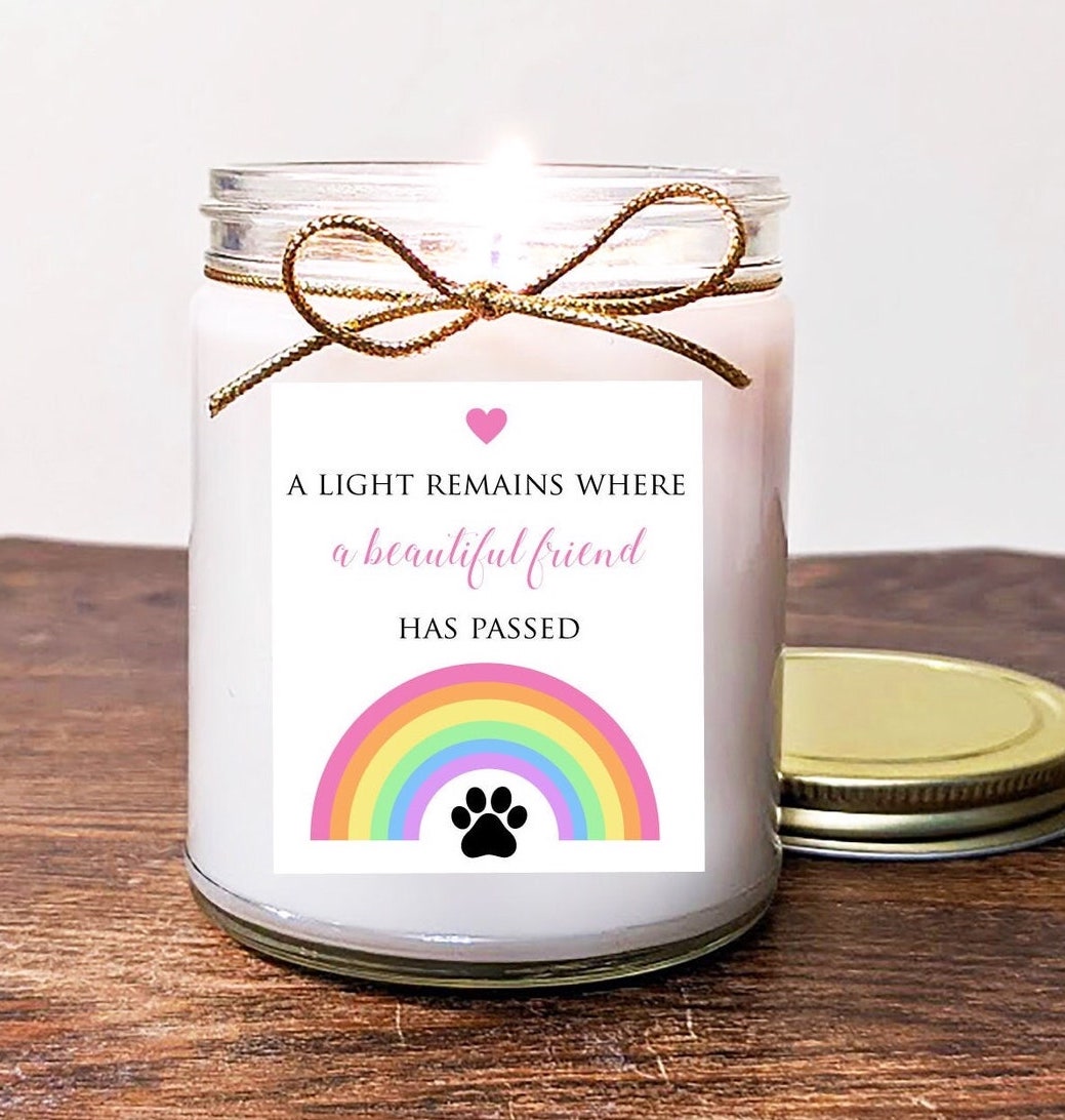 Pet Memorial Gift Candle. Loss of dog. Rainbow Bridge. Loss of Cat. A light remains where a beautiful friend has passed. Soy Vanilla.