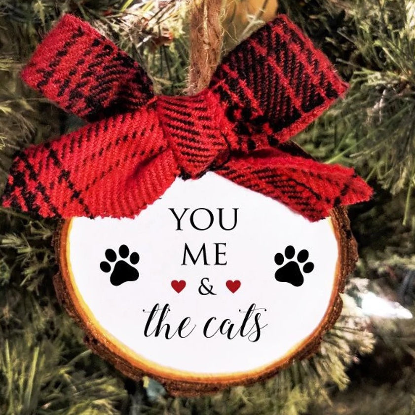 Ornaments are hand made. They are printed on 80# paper. They are then sealed over a wood slice. Size will vary and be about 2.4-2.8 inches. They are not hand painted. The ornament will come with the red and black buffalo plaid bow that is pictured.