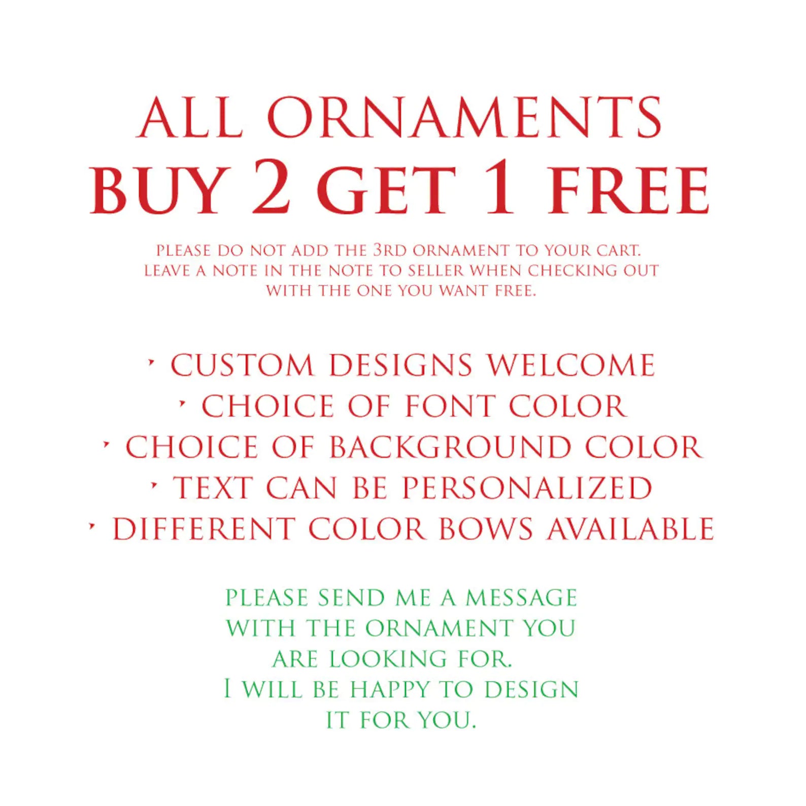 If you purchase 2 ornaments please send me a note with the one you would like free when checking out. Do not add it to your cart.